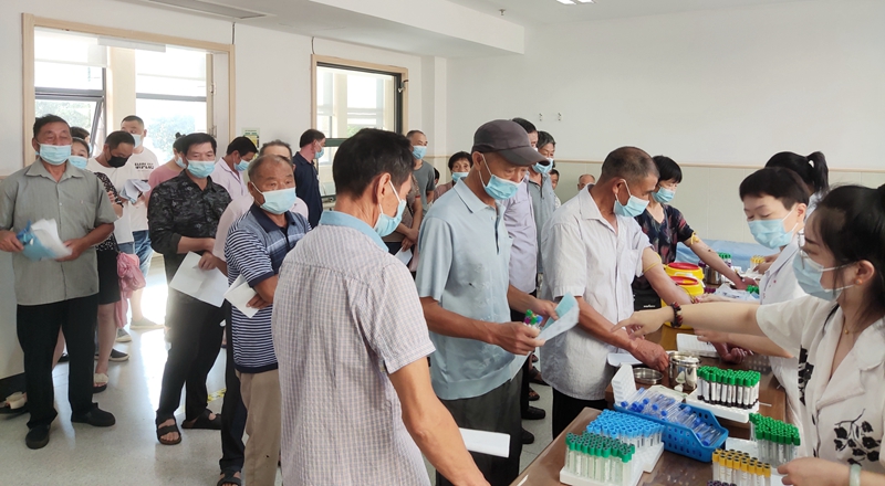 村民們踴躍前來采血篩查,為共創(chuàng)無“核”小島美好家園助力