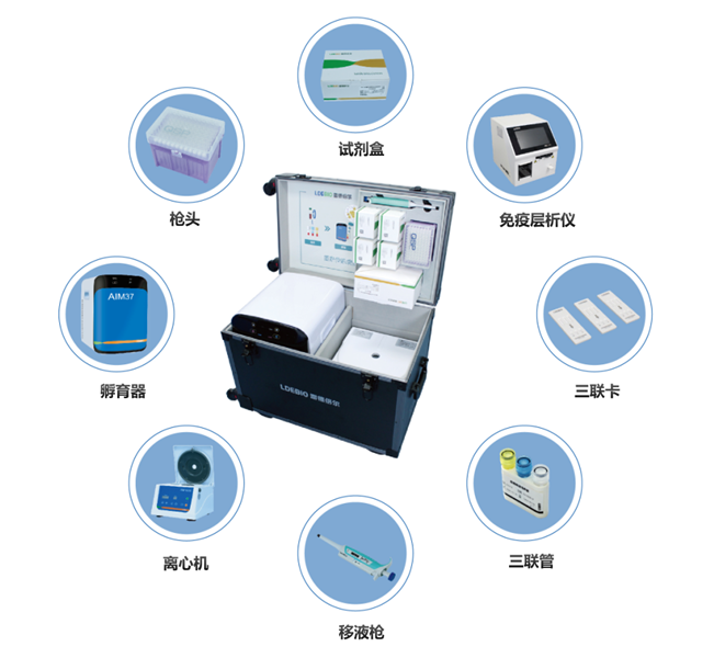 雷德倍爾可移動結(jié)核檢測系統(tǒng)mIGRA??,外觀為一個小小的移動箱,內(nèi)里乾坤豐富,內(nèi)含孵育器、熒光免疫分析儀、移液器、離心機、γ 干擾素(IFN-γ)檢測試劑盒、細胞刺激試劑盒等結(jié)核感染檢測所需的所有設(shè)備物料,具備可移動、高性能、易操作等特點,即拎即走,即到即測,特別適合基層和偏遠海島村民檢測。