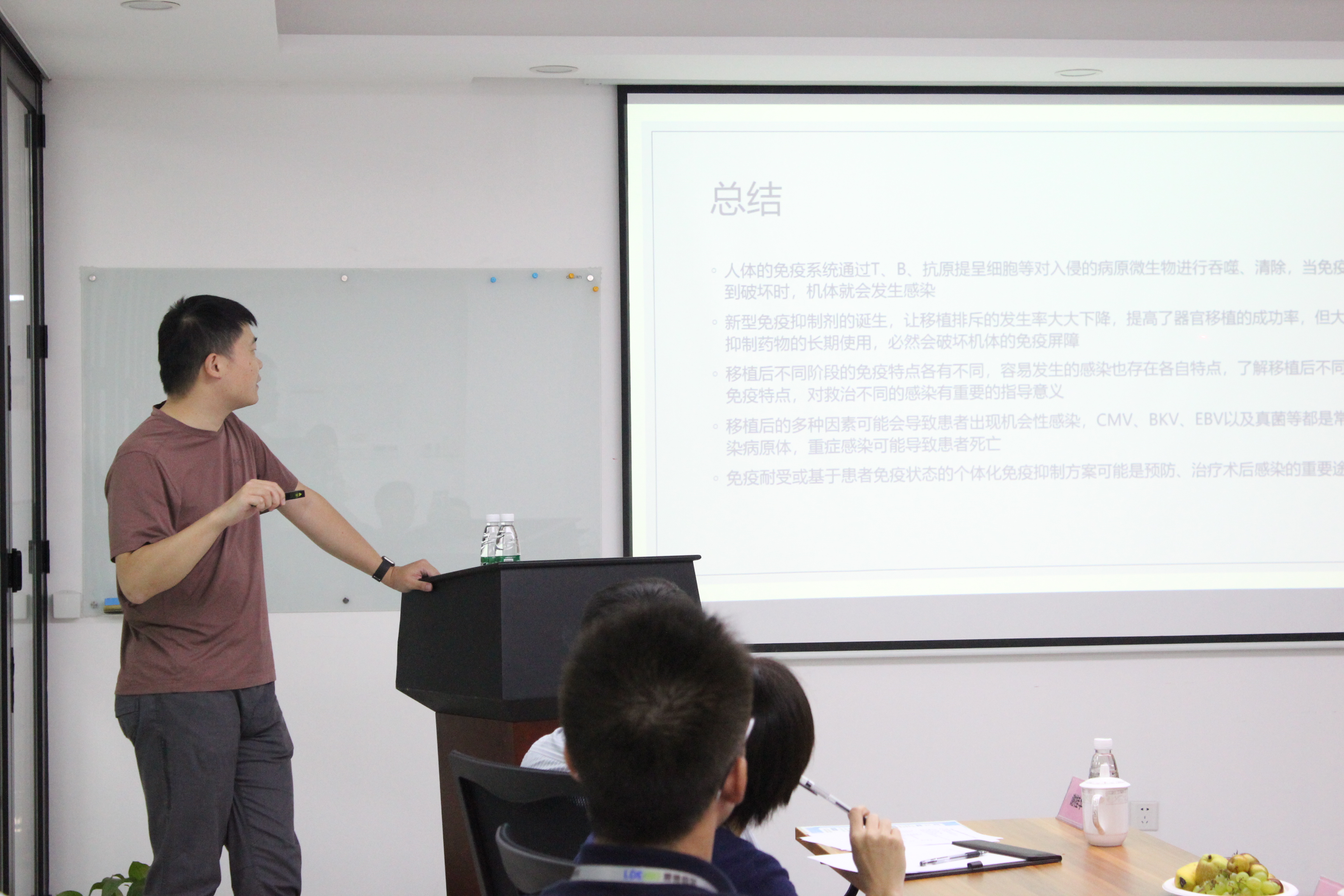 會議繼續(xù)進(jìn)行,首先由李醫(yī)生介紹移植與感染的臨床現(xiàn)狀,從免疫與感染的關(guān)系、移植術(shù)后感染的不同病原體類型、及臨床常見的診療方法分別闡述。了解移植后不同階段的免疫特點(diǎn),對救治不同的感染有重要的指導(dǎo)意義,免疫耐受或基于患者免疫狀態(tài)的個體化免疫抑制方案可能是預(yù)防、治療術(shù)后感染的重要途徑。