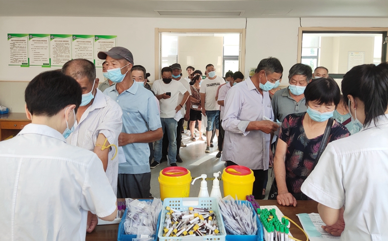 村民們踴躍前來采血篩查,為共創(chuàng)無“核”小島美好家園助力