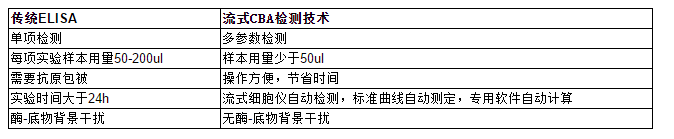 4、更高的靈敏度、更寬的檢測范圍和更好的重復(fù)性。CBA技術(shù)使蛋白定量的分析靈敏度高達(dá)pg/ml級別,檢測范圍達(dá)0-5000pg/ml,所有分析只需一組標(biāo)準(zhǔn)曲線。根據(jù)抗體的熒光強(qiáng)度對目的蛋白定量,排除了ELISA反應(yīng)中酶聯(lián)放大產(chǎn)生的假陽性。
