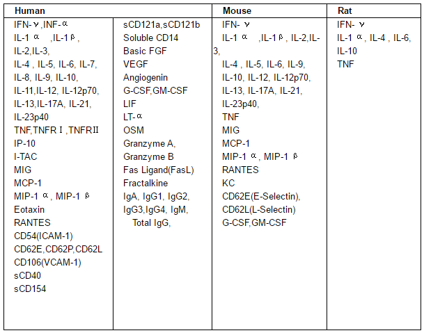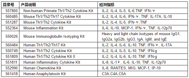 2、CBA Flex Set 細(xì)胞因子檢測指標(biāo)